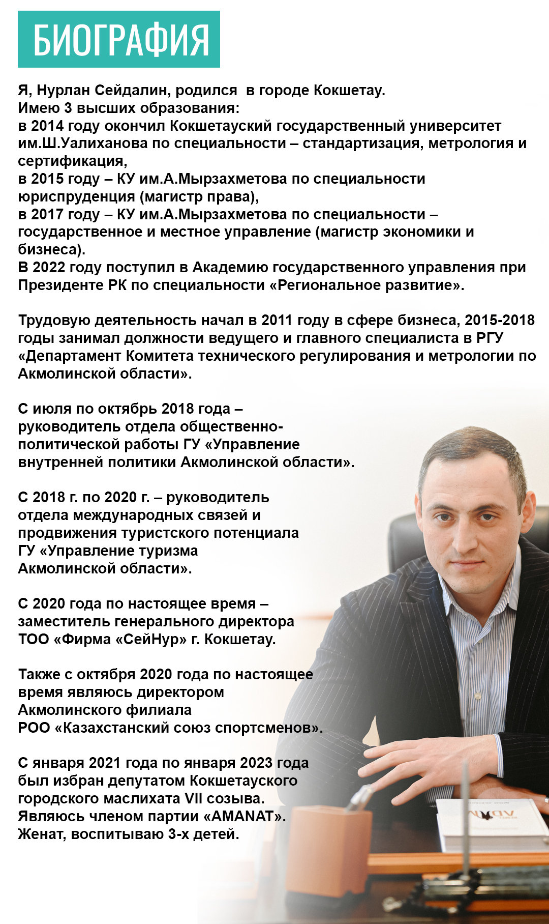 Сайт кандидата в депутаты Кокшетауского городского маслихата по избирательному округу №17